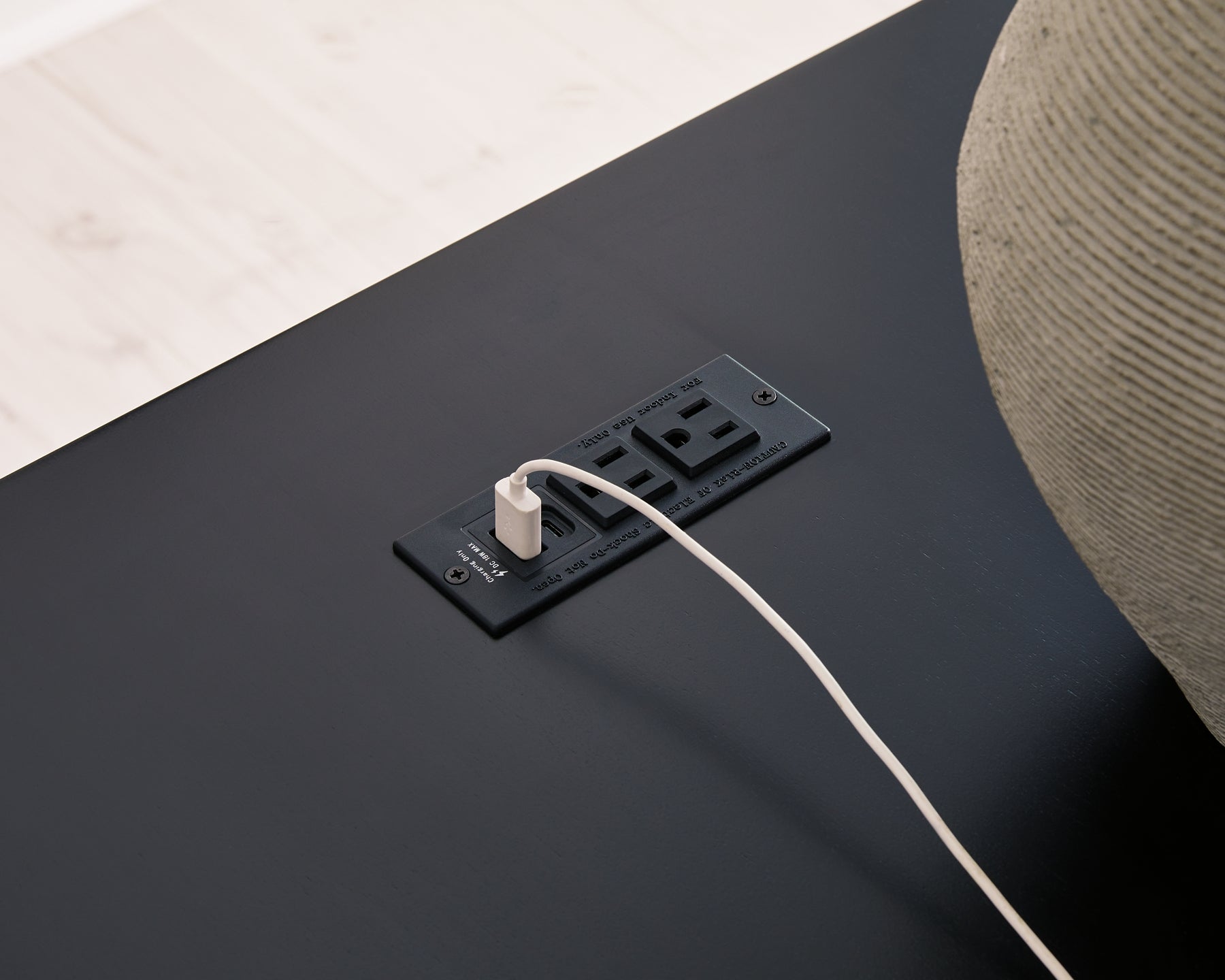 Double down on casual chic with the two-tone look of this credenza with desk return. With its warm brown and matte black finishes, it reflects your eye for modern design. Trend-right slatted styling on the doors brings added charm. The desk can sit on either side of the credenza for added flexibility in compact spaces. And with its adjustable shelves, open storage and accessories drawer, keeping home office essentials organized is a breeze.