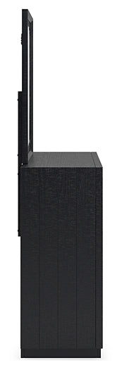 Details Includes dresser and mirror, Made with pine solids, veneers and engineered wood substrate, Textured black wood stain with waxy topcoat, Hardware-less design, 6 drawers with fully finished interiors, dovetail construction and ball-bearing side glides (top drawers felt lined), Mirror attaches to back of dresser