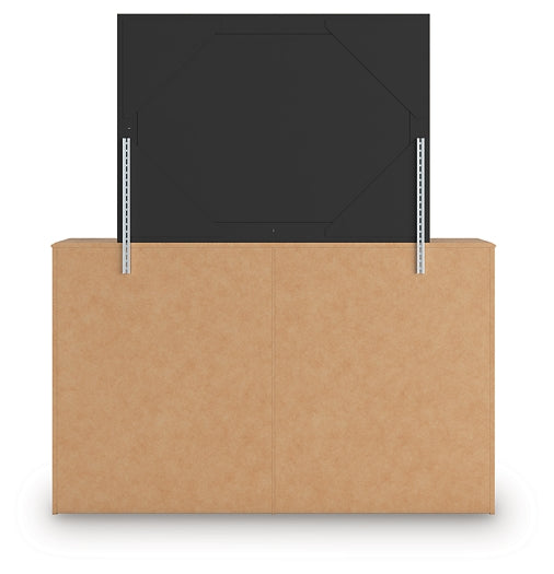 Cambeck Queen Panel Bed with 2 Storage Drawers with Mirrored Dresser