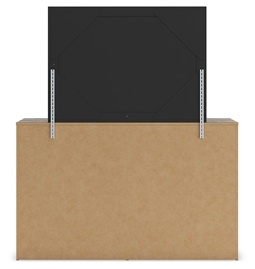 Realyn King Upholstered Panel Bed with Mirrored Dresser